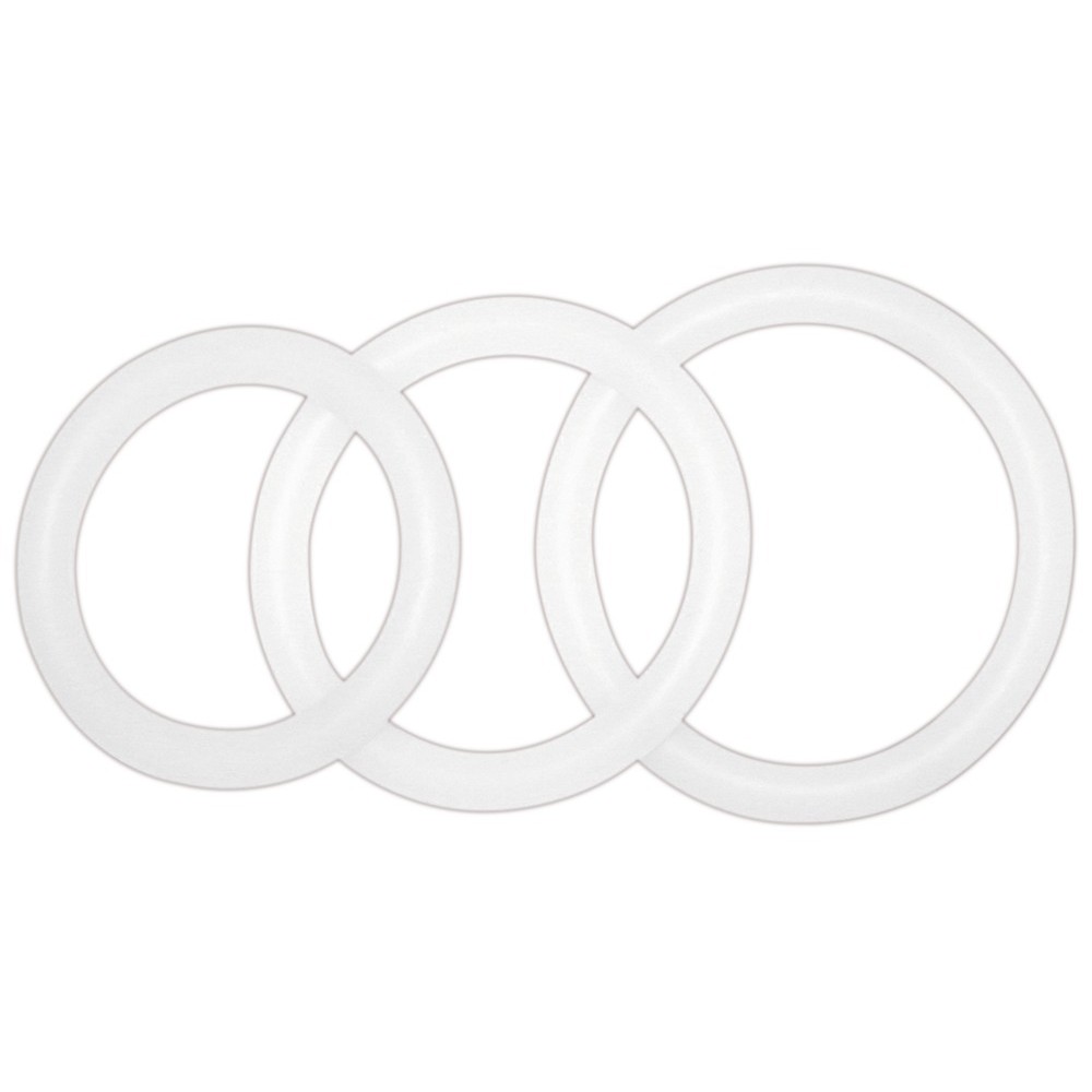 Set mit drei transparenten Penisringen, die durch Einschränkung des Blutflusses eine wirksame Unterstützung der Erektion bieten. Mit einem Durchmesser von 3,5 cm, 4 cm und 4,5 cm (flexibel) passen sie sich bequem an verschiedene Größen an.