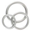 Drei Penis-/Hodenringe in verschiedenen Größen, in einem Set mit auffälligem Metallic-Look, aber mit dem Komfort und der Sicherheit von Silikon. Sie sind sehr flexibel und lassen sich leicht über den Penis und die Hoden schieben, um feste und lang anhaltende Erektionen zu erzielen.