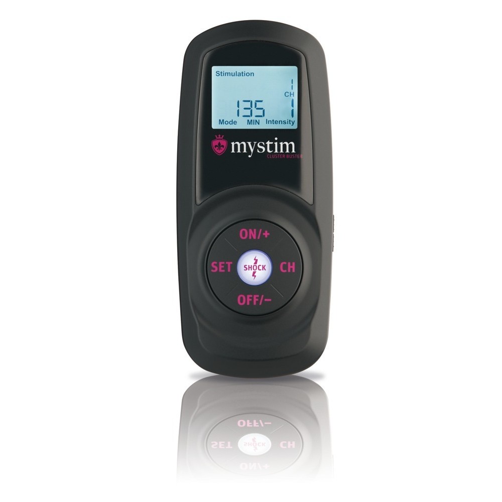 Der mystim Cluster Buster wird in einer eleganten Aufbewahrungsbox geliefert. Im Lieferumfang enthalten sind eine Fernbedienung, ein Empfänger, eine selbstklebende bipolare Elektrode und eine Gebrauchsanweisung. Der Lithium-Ionen-Akku ist über das mitgelieferte Kabel wiederaufladbar.