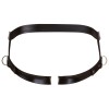 Körpergurt in matter Optik mit elastischen Oberschenkelriemen, ausgestattet mit seitlichen D-Ringen und einem vorderen Penisring. Verstellbar mittels Druckknöpfen für einen sicheren und bequemen Sitz.