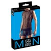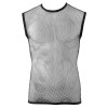 Schwarzes Shirt aus grobmaschigem Netzstoff, ideal für selbstbewusste Männer, die gerne auffallen. Betont Körper und Muskeln auf provokante und elegante Weise. Mit Rundhalsausschnitt und verstärkten Nähten für mehr Tragekomfort.