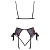 Das Set von Kissable besteht aus einem bügellosen BH, einem Strumpfgürtel und einem String und ist aus zartem schwarzem Powernet mit aufwendigen Blumenstickereien in Rosa und Lila gefertigt. Weich und elastisch, bietet es außergewöhnlichen Tragekomfort. Der BH verfügt über eine Satin-Schleife vorne und an jeder Seite, einen Hakenverschluss am Rücken und verstellbare Träger. Das Strumpfband hat einen Hakenverschluss am Rücken und verstellbare Strumpfbandhalter. Der kleine String ist dank seiner zwei dünnen, elastischen Bänder, die sich vorne vereinen, äußerst verführerisch.