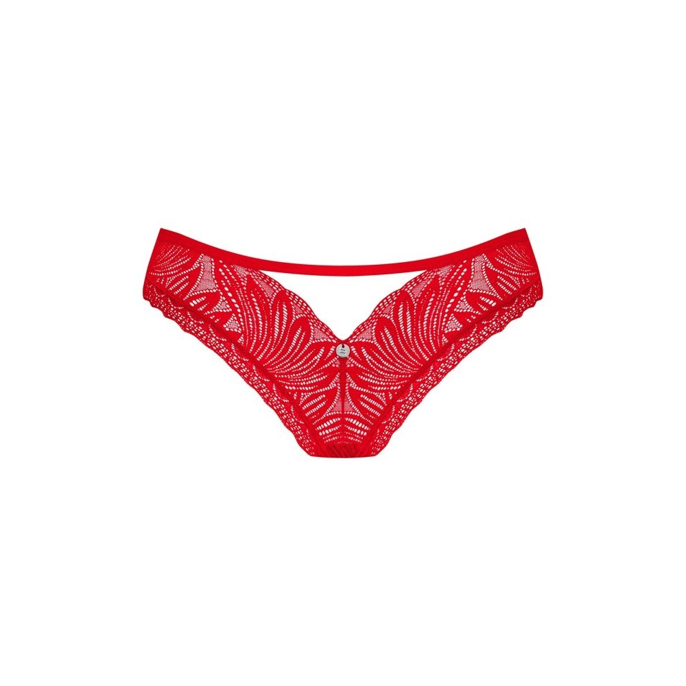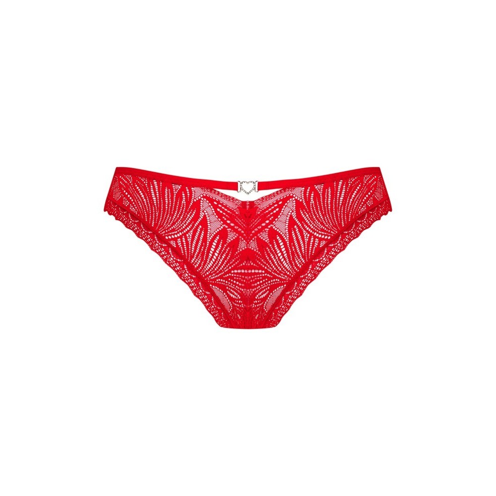 Der elegante Tanga „Chilisa“ von Obsessive ist vollständig aus weicher Blumenspitze gefertigt und umschmeichelt die weiblichen Kurven perfekt. Auf der Vorderseite lenkt ein raffinierter Ausschnitt mit einem zarten Band den Blick auf subtile Weise auf sich und sorgt für einen verführerischen Effekt. Das glänzende Herzdetail im unteren Bereich verleiht dem Ganzen einen bezaubernden und romantischen Touch.