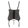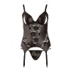 Cami-Oberteil mit verstellbaren Trägern, Ausschnitten an den Cups und Spitzeneinsätzen vorne. Mit langem Hakenverschluss am Rücken und passendem Spitzen-Tanga.