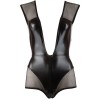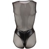 Ärmelloser Body aus einer Kombination aus schwarzem Wetlook-Stoff und Netzstoff für einen gewagten und verführerischen Kontrast. Mit Reißverschluss im Intimbereich für mehr Funktionalität und Provokation.