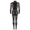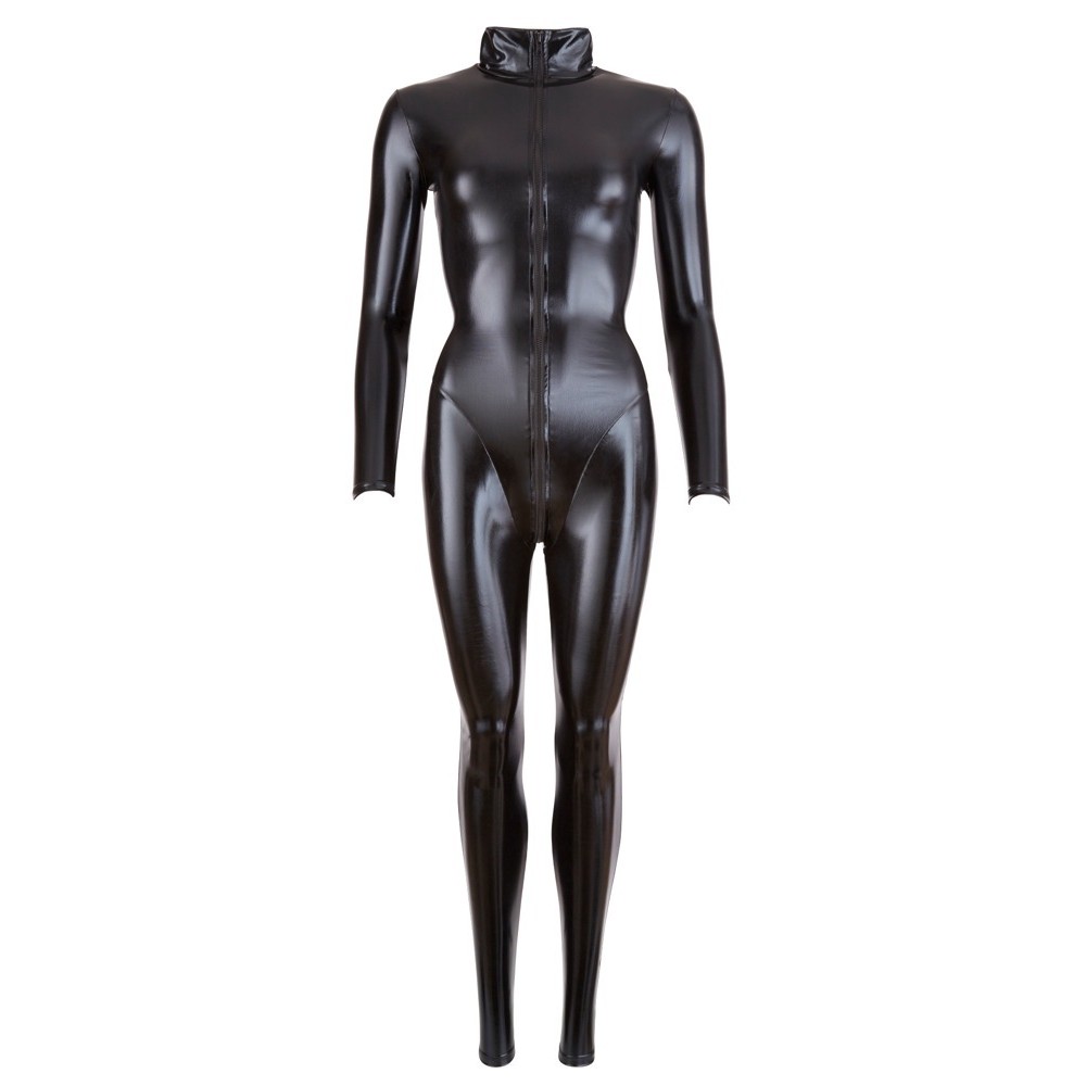 Dieser schwarze Overall mit langen Ärmeln und Beinen und Stehkragen umhüllt den Körper vollständig, ohne an Sinnlichkeit einzubüßen. Das elastische Material passt sich perfekt an und betont die Kurven auf elegante Weise. Der breite 2-Wege-Reißverschluss beginnt am Hals, verläuft über den Schritt und endet am oberen Gesäßbereich, was für mehr Vielseitigkeit und einen gewagten Touch sorgt.