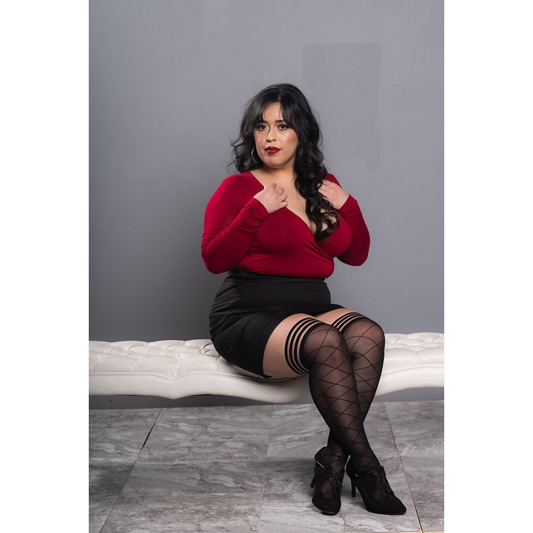 Kix'ies diamond pattern stockings, elegant, non-slip and perfect for everyday or evening wear.