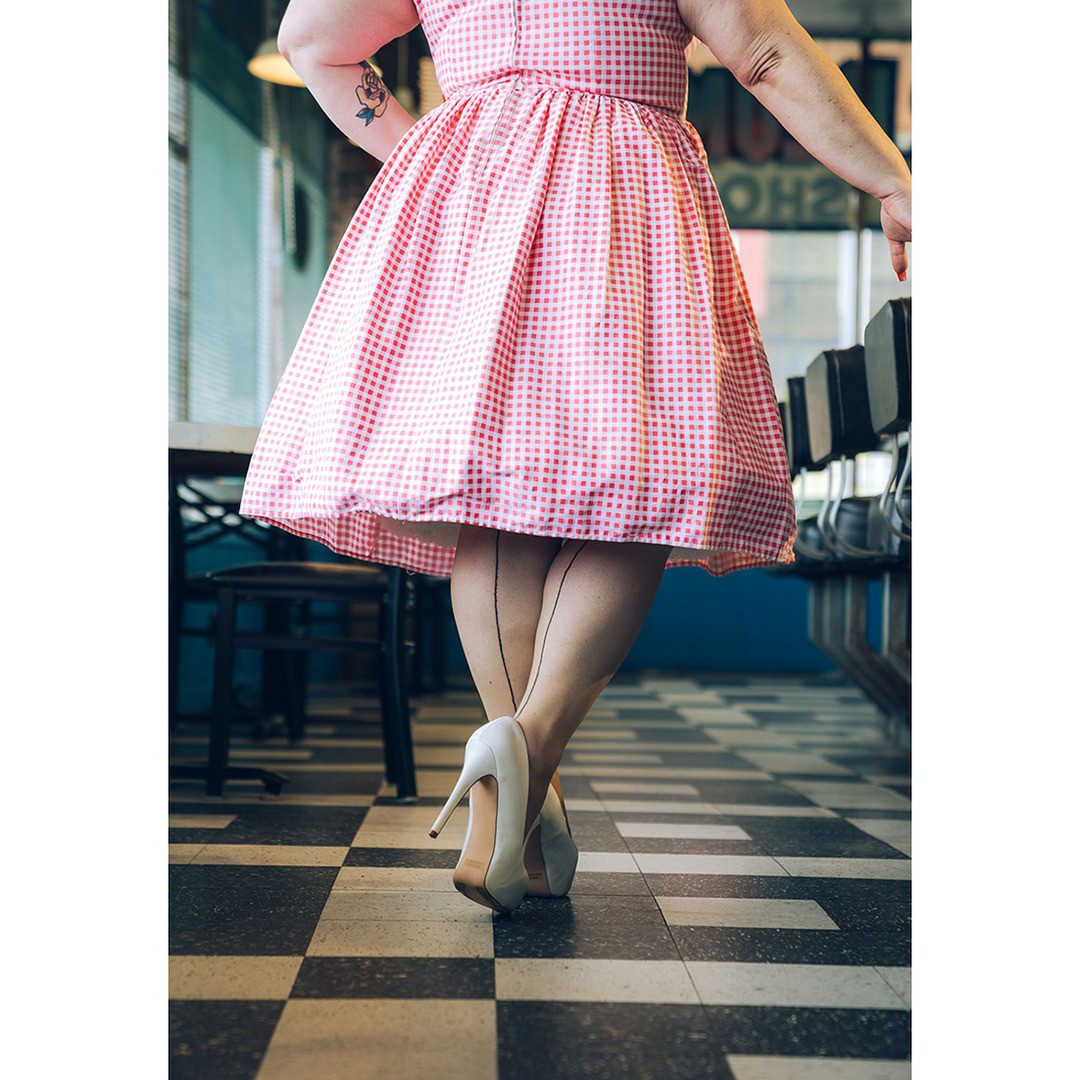 Kix'ies nude stockings with back seam and Cuban heel, elegant, non-slip and ideal for everyday use or special occasions.