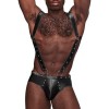 From the Fetish collection by Male Power, this style includes: A jock brief featuring suspender straps, harness style back, cutout rear, and attached metal rings and decorative studs.