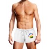 Get wet and wild in this sexy all-white swim trunk featuring the signature Prowler paw print logo in the colors of the LGBTQ Progress Pride flag. The elastic waistband of this swimsuit also features a matching white drawstring at the front to ensure a comfortable, secure fit while you swim, lay out or party by the pool or at the beach. The quick-drying, lightweight fabric also makes this trunk perfect for all your favorite occasions.