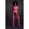 Our Neon lingerie is the perfect addition to your collection. Made with comfortable, easytofit, stretchy materials they are designed to fit your body perfectly. Whether you're using them as party wear or as lingerie, this eye-catching piece will make sure you stand out! Unleash your inner goddess with this stunning UV activated lingerie. This piece consist of a halter neck crop top and garter belt stockings. An amazing party-wear that gives you that wow-factor and makes you stand out. The UV activated materials adds a touch of mystery and allure. Easy to fit because of the stretchy materials will make you light up the night. Available in neon pink and neon green. Sizes run from XS/ XL to XL/XXXXL