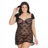 Pink and black dress in stretch lace, with front bow, which combines elegance and comfort for all occasions.