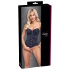Das trägerlose Oberteil mit vollen Cups von Cottelli PARTY ist aus mattem, schwarzem Samtstoff gefertigt. Die integrierten Bügel (6 auf jeder Seite) sorgen für eine schöne Silhouette und betonen die Kurven. Die Vorderseite hat einen Haken- und Ösenverschluss, sodass es sich schnell und einfach an- und ausziehen lässt. Auf der Rückseite befindet sich eine durchgehende Schleife mit einem Stück Stoff darunter, damit keine Haut zu sehen ist.