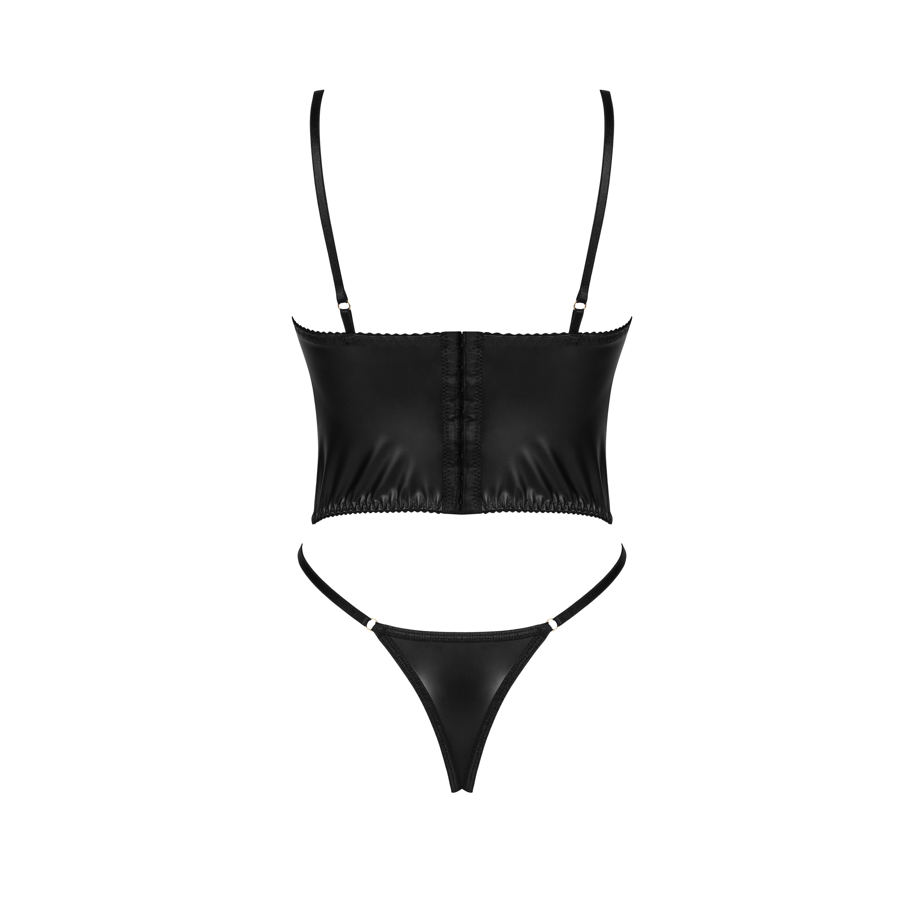 Sexy set made of black wetlook material.