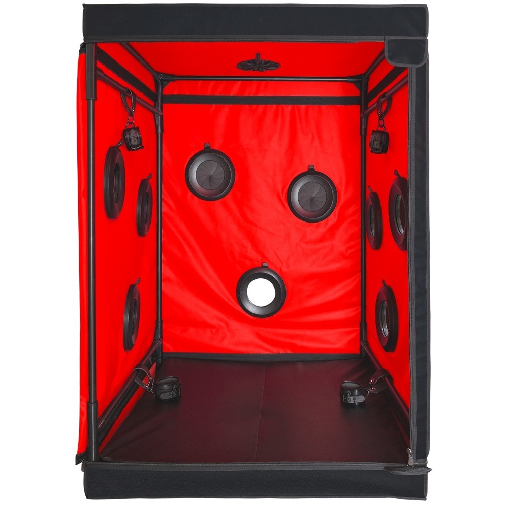 Box (disassembled), floor mat, 1 pair of handcuffs, 1 pair of ankle cuffs, 2 fans, 1 LED light â everything comes in the practical storage/travel bag.