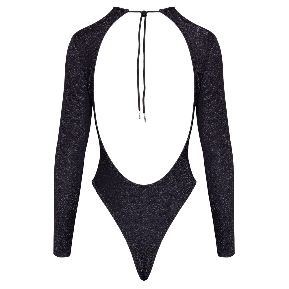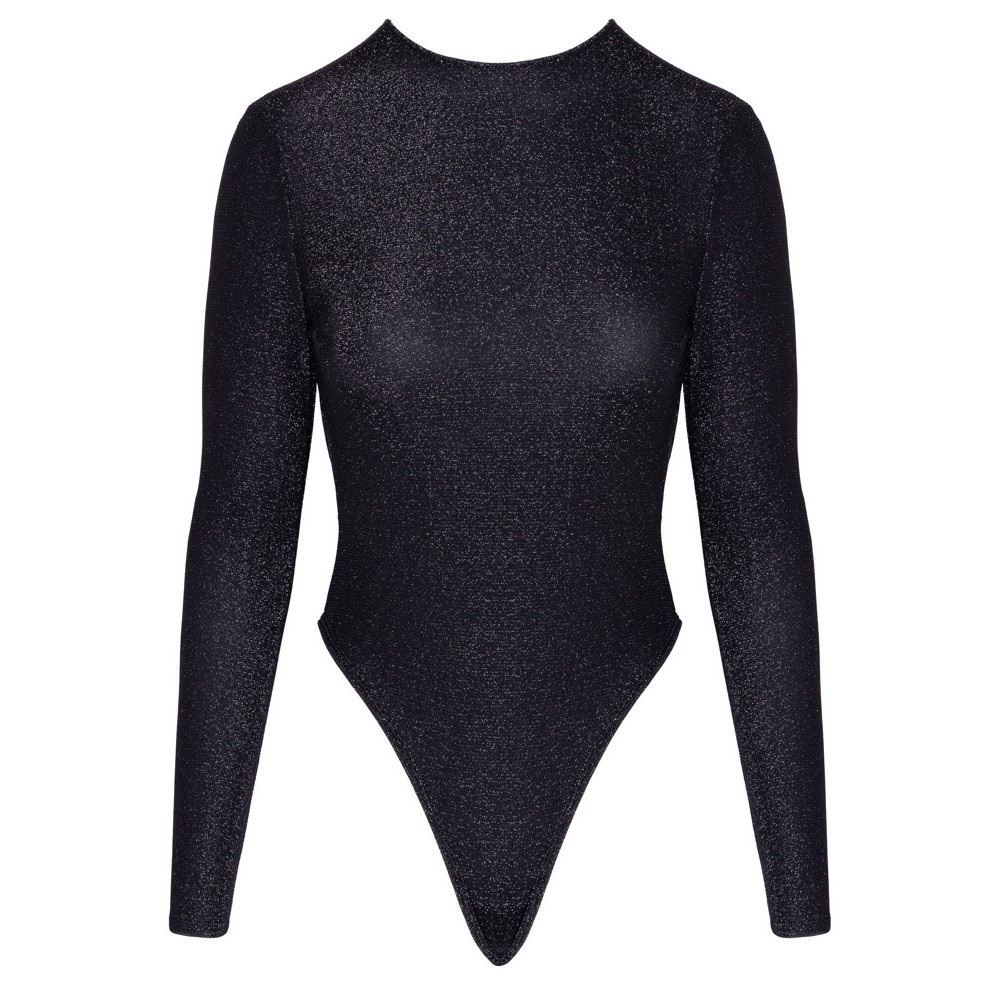 Der langärmelige String-Body von Cottelli PARTY besteht aus schwarzem Material mit integriertem glänzendem Silbermaterial. Er ist weich und dehnbar und bietet somit einen sehr bequemen Sitz. Er ist atemberaubend rückenfrei und hat einen Kordelzug im Nacken mit verstellbarem Verschluss. Der String-Schnitt sorgt für einen hohen Beinausschnitt, der Ihre Beine und Ihren Po auf atemberaubende Weise zur Geltung bringt. Er hat einen praktischen Hakenverschluss im Schrittbereich.