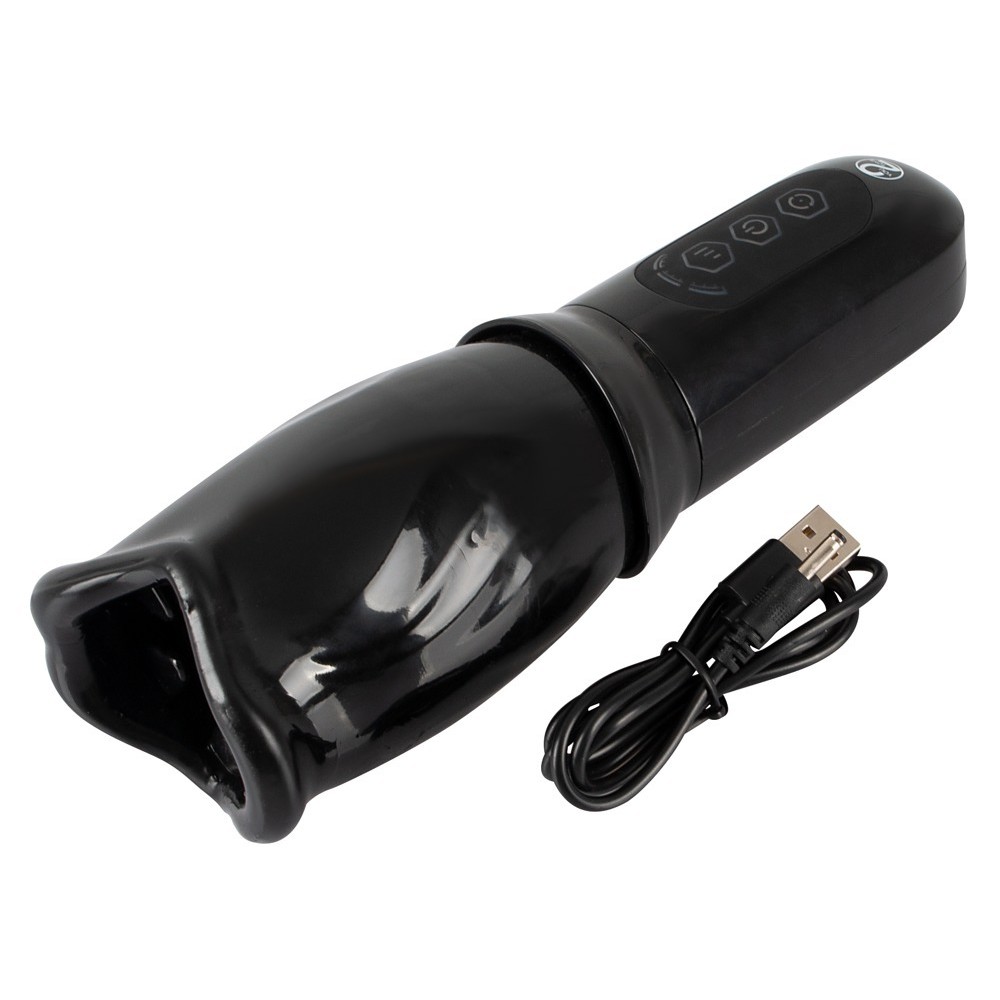 The rechargeable Stroker rotating masturbator has a soft, rotating sleeve shaped like a mouth. Inside, it features numerous soft, stimulating tongues that provide an intense and enveloping massage to the penis.