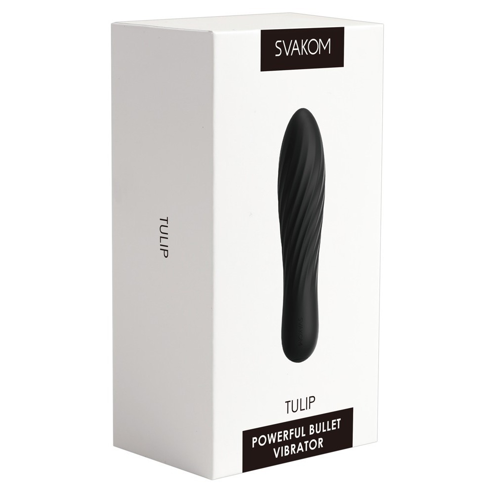 Powerful Tulip bullet vibrator from SVAKOM, with a curved and ribbed design. This silicone vibrator is small, compact, powerful, extremely soft and very pleasant to hold – it fits easily into any bag.
