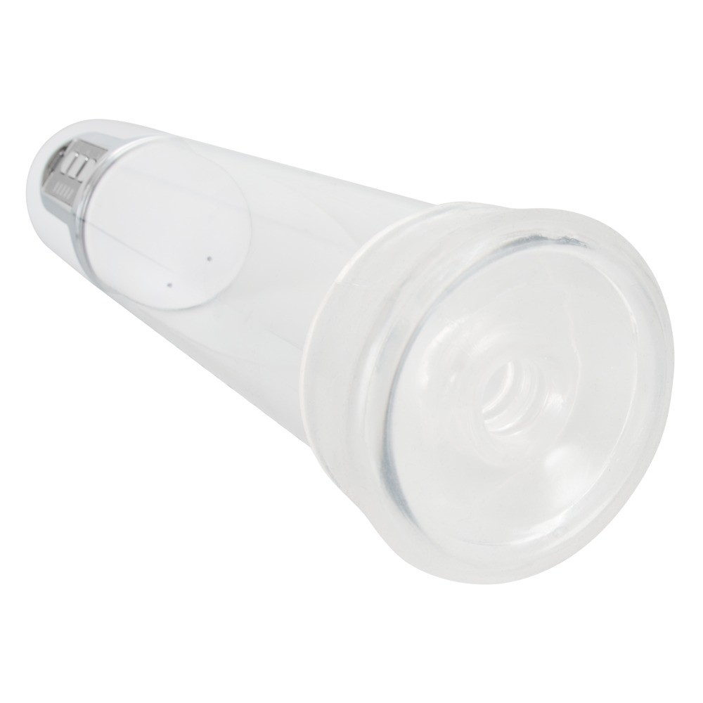 This transparent penis pump includes a comfortable sleeve, a white end that creates the vacuum and an elegant silver control panel with three buttons. It also has a measuring scale in centimetres and inches, allowing you to easily track your results. It is rechargeable via the included USB cable, ensuring practical and uninterrupted use.