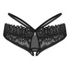At first glance, it has a classic style, but the elastic opening in the crotch area reveals a daring and irresistible side. The cut elegantly accentuates the buttocks, while the floral lace adds a touch of sensuality. A delicate silver pendant completes this charming design, made for special moments.