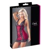 A stunning red lingerie dress that makes you absolutely irresistible. The cups are entirely made of delicate black lace, enhancing your femininity, as does the black lace trim. Lace inserts at the front, which perfectly frame the decorative bow, offer seductive glimpses. Adjustable straps for a perfect fit.