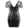 Fitted dress at the waist, extremely appealing with front and back neckline. Features a two-way zip at the front, short sleeves and slightly transparent material at the front and back. Delicate lace details on both sides complete the look.