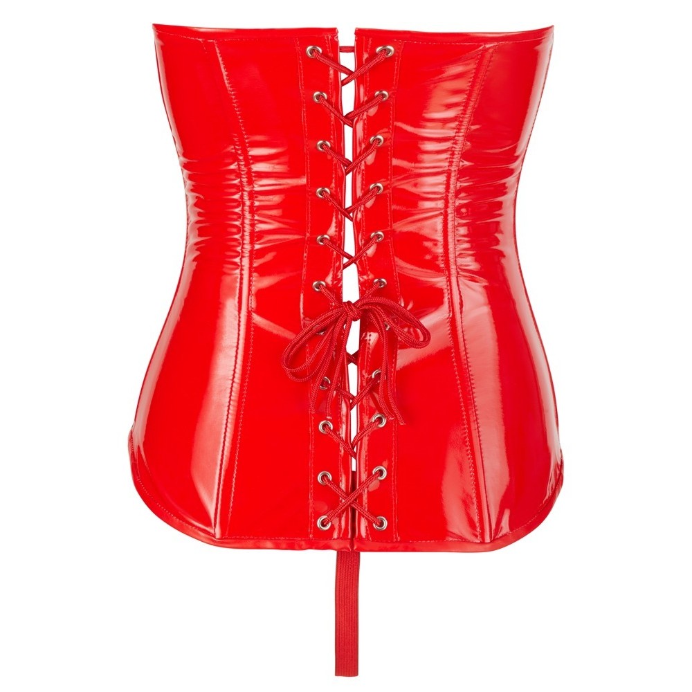 This sexy corset from Black Level is made of shiny red vinyl and is a real erotic eye-catcher. Your curves are seductively emphasised thanks to the longer than usual cut, which also covers the hip area. The integrated shaping fins create an extremely feminine silhouette, while the decorative bow at the back adds an elegant finishing touch. The front hook fastening allows you to open and close the corset quickly and easily. The six suspender straps are adjustable and removable.