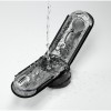 Fully detachable for easy filling with lubricant and hygienic cleaning, with integrated drying stand.