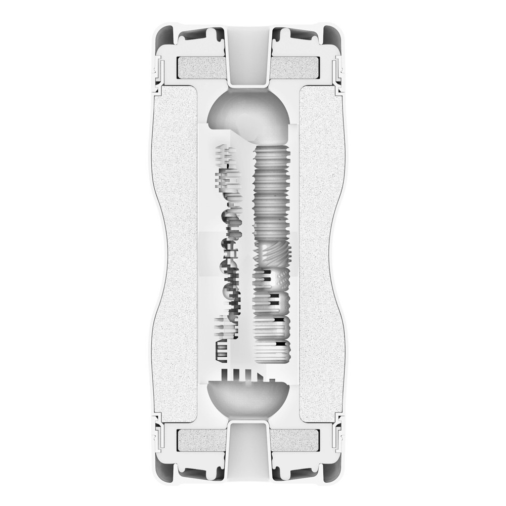 The TENGA Dual Sensation Cup Extremes masturbator has two usable ends in a discreet cup with intertwined pleasure channels that provide unique and intense sensations. The Extreme Tender side (white) stimulates gently and delicately, while the Extreme Tough side (black) offers strong, gripping stimulation.