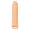 The Nature Skin 2in1 Extension Masturbator MEDIUM combines a penis sleeve for extension and thickening with a masturbator in one toy. Its realistic design features a vagina-shaped opening and a sleeve with protruding veins and a fleshy head. The interior offers an intense and authentic stimulating texture, ideal for solo masturbation or moments of pleasure with a partner.