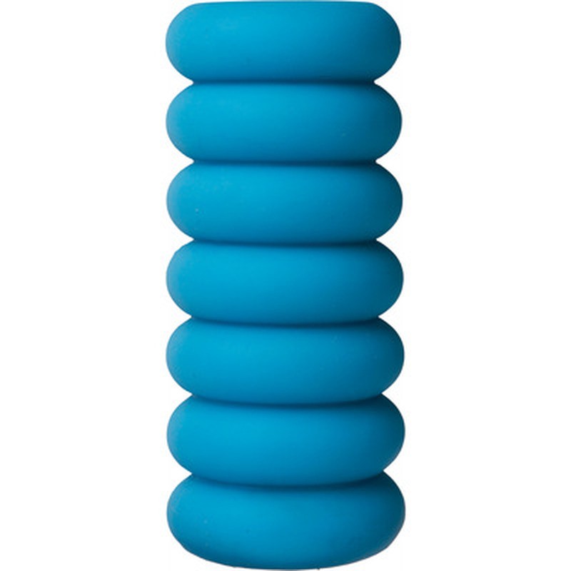 The unique triple-textured pleasure tunnel features large massage pearls at the entrance, pronounced ribs in the middle, and small stimulating pearls that taper to a tight open end.