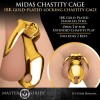 18k gold-plated stainless steel chastity cage with open tip and two adjustment rings.