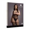 This elegant bodystocking combines sensuality and comfort with a touch of sophistication. It features a lace pattern on the top and integrated fishnet stockings, joined by delicate frayed straps that create the effect of suspenders.