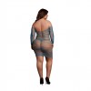 LE DÉSIR CONTRAST NET LONG SLEEVED MINI DRESS QUEEN SIZE