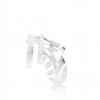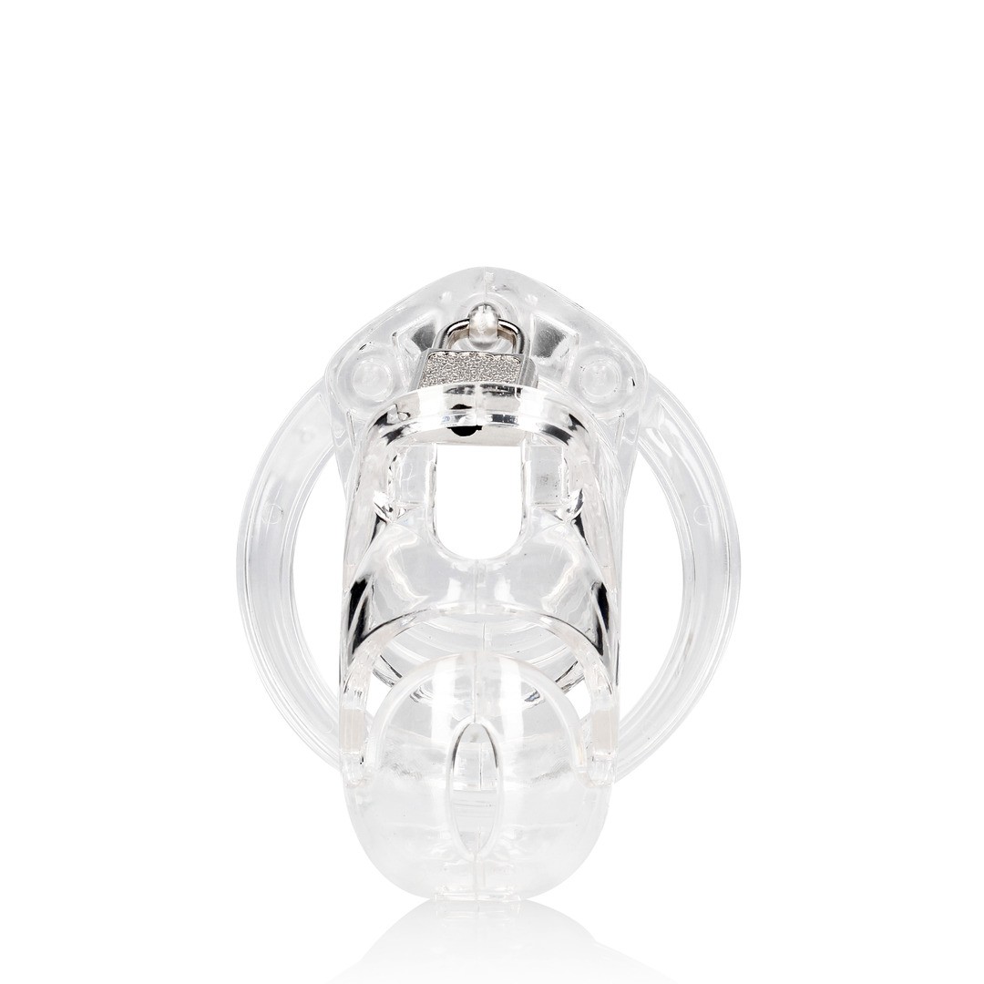 ManCage chastity cages are made of high-quality polycarbonate, a lightweight, durable and hypoallergenic material. The frame consists of three parts that fit together precisely. Two guide pins connect the upper parts, while the oval tapered pin joins the rings to the cage.