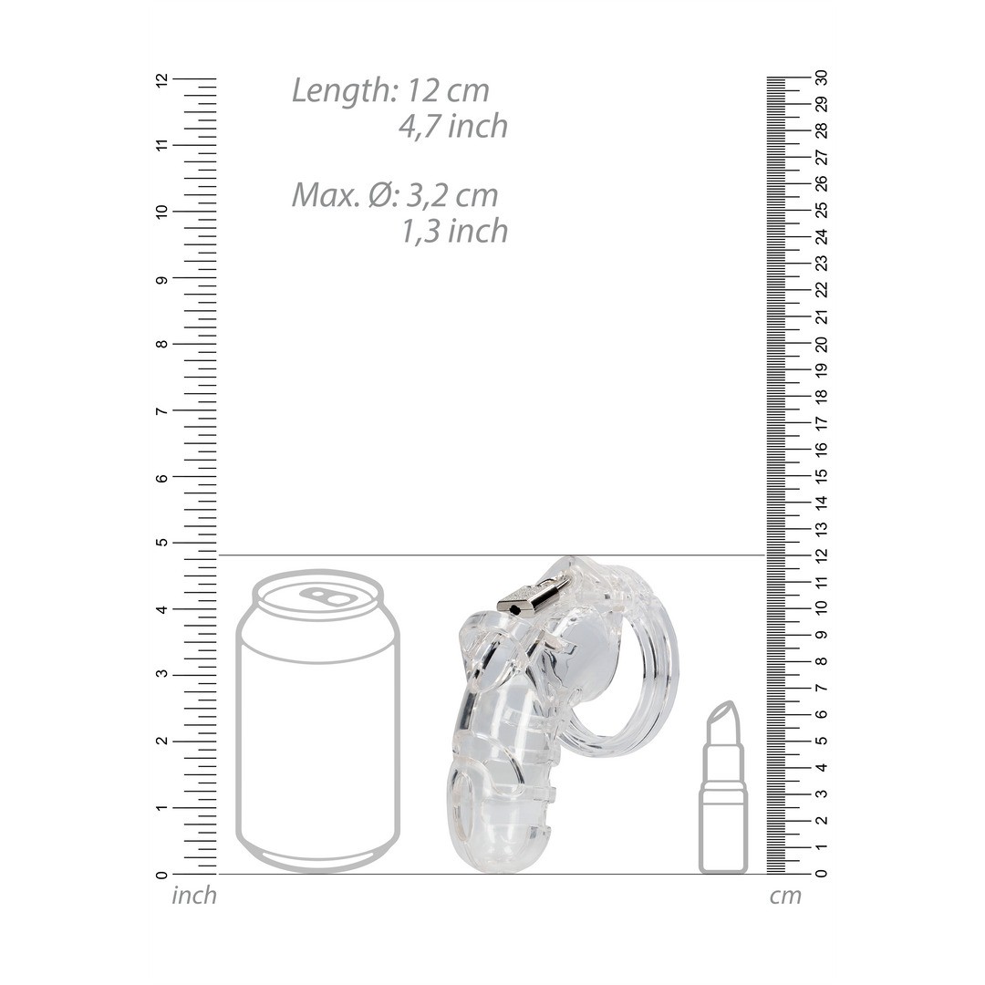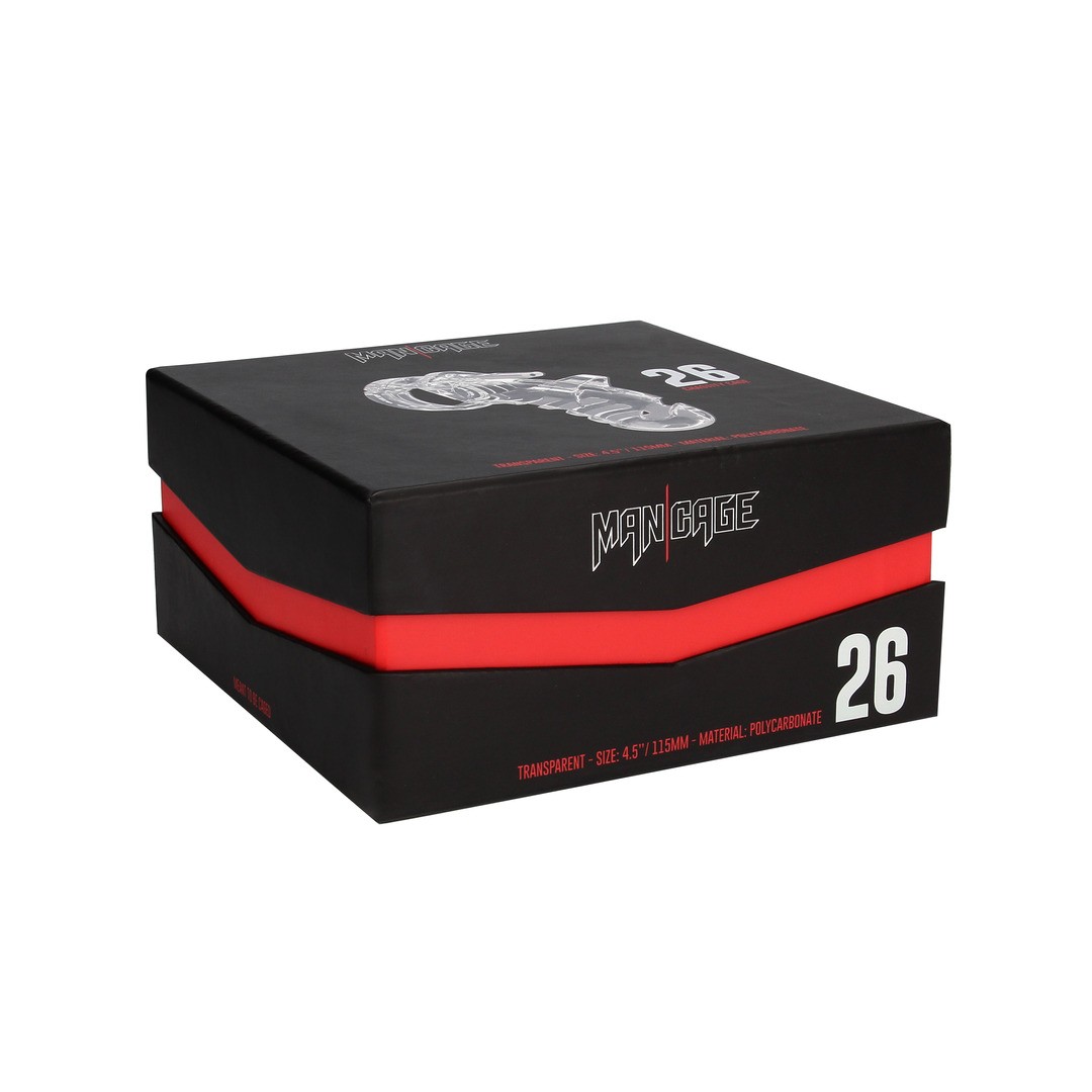 ManCage cage made of lightweight, hypoallergenic polycarbonate, adjustable, discreet and safe for BDSM play.