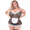 Issu de la collection Dress Up de Magic Silk, ce costume comprend une robe à bretelles qui s'attache au cou, avec une finition en dentelle contrastée et un tablier sur le devant. Il comprend des rubans en satin autour de la taille, des nœuds en dentelle dans le dos, des poignets en dentelle coulissants et un string assorti. Il offre un ajustement confortable et est fabriqué à partir de matériaux et de tissus de haute qualité qui soulignent les contours du corps.