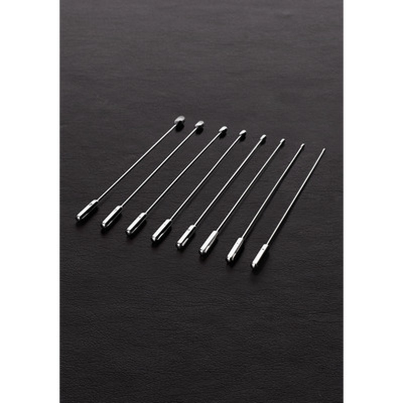 Set of 8 stainless steel urethral probes with rosebud tips, ideal for gentle and safe stimulation.