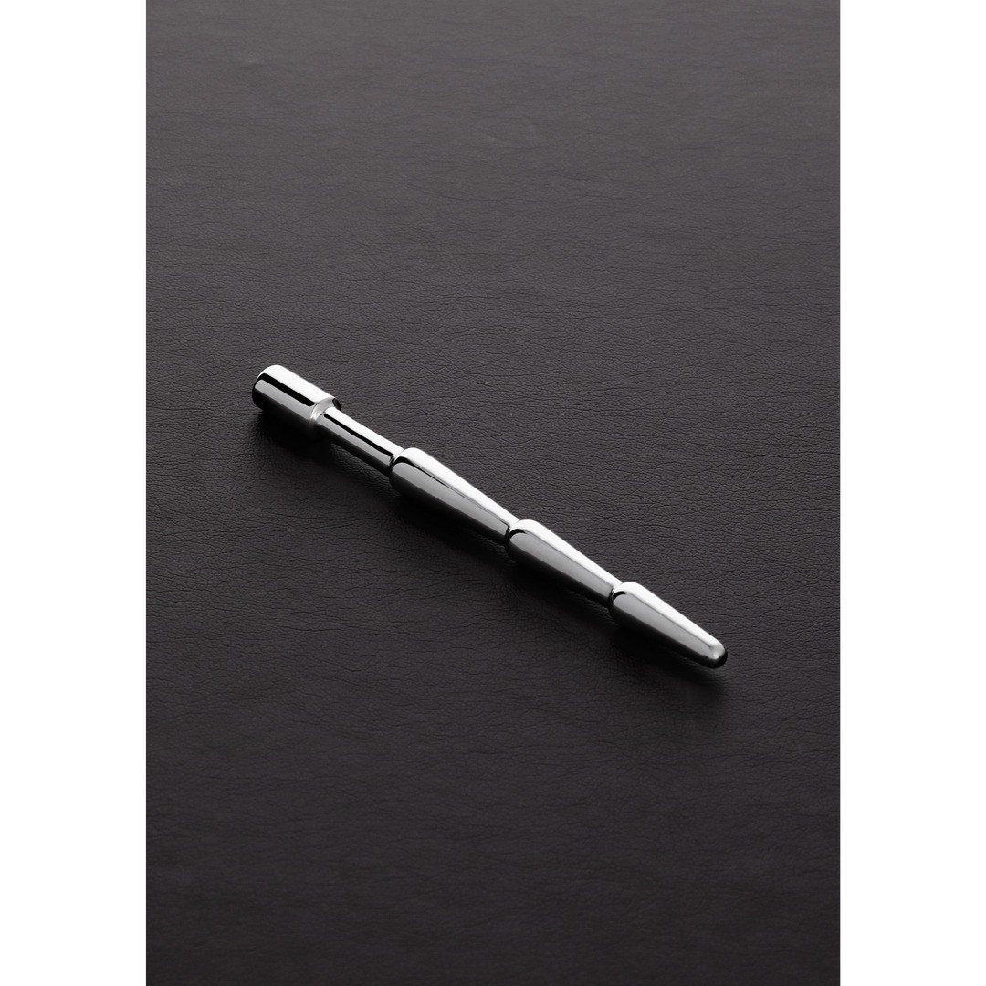 Surgical stainless steel urethral plug, designed for a comfortable and secure fit. It features a rounded, smooth and secure insertion tip, decorated with a colourful jewel that adds elegance to the product. The insertable length is 9.9 cm and the diameter is 0.9 cm. Easy to clean, this plug from the Shots Steel range is made from high-quality materials to ensure durability and safety.