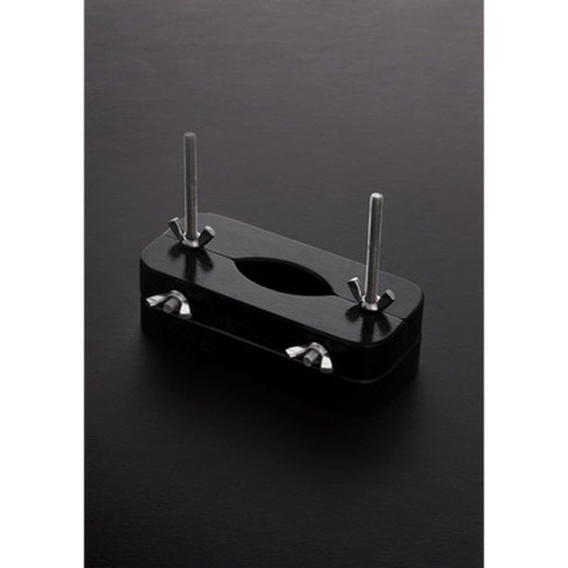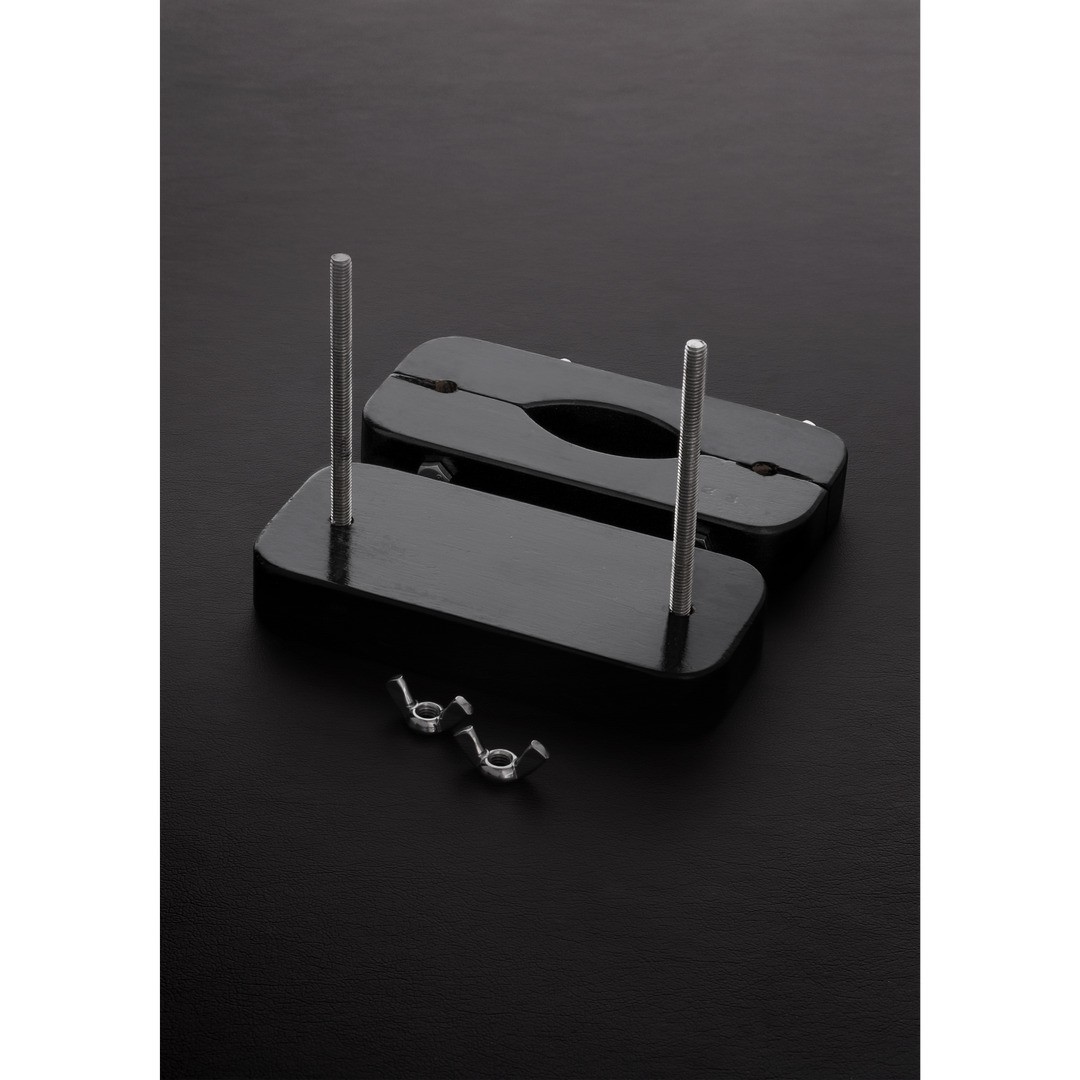 Made of wood with a black lacquer finish, this patented Testicle Vice is fully adjustable — both in placement and pressure applied. With a length of 10.4 cm and an adjustable width of up to 8.3 cm, it adapts to different levels of intensity. Durable, practical and easy to clean, it was developed to provide strong and controlled experiences.
