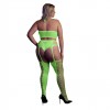 OUCH! NEON UV TWO PIECE SET WITH CROP TOP AND STOCKINGS QUEEN SIZE