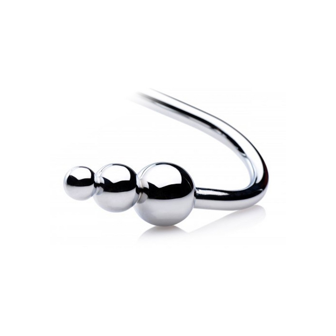 Better than a regular anal hook, the Meat Hook features three stacked stimulating spheres that intensely massage your partner's anal walls. A ring at the top of the hook allows for the addition of ropes or chains, ideal for completing a BDSM scene. Each movement transmits deep sensations directly to the anal area.