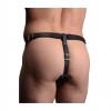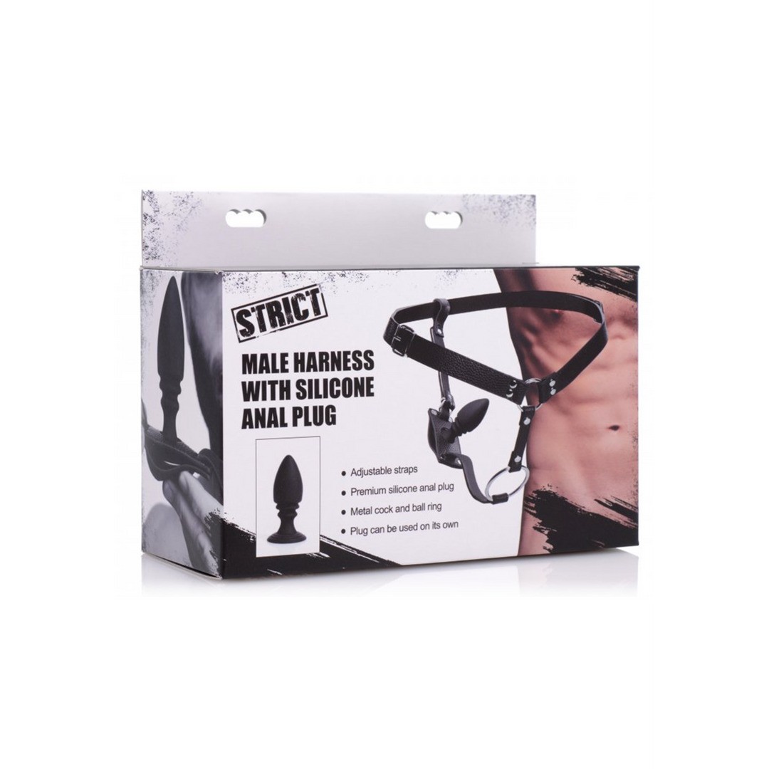 Harness with metal cockring and removable anal plug with suction cup, providing double pleasure and absolute control.