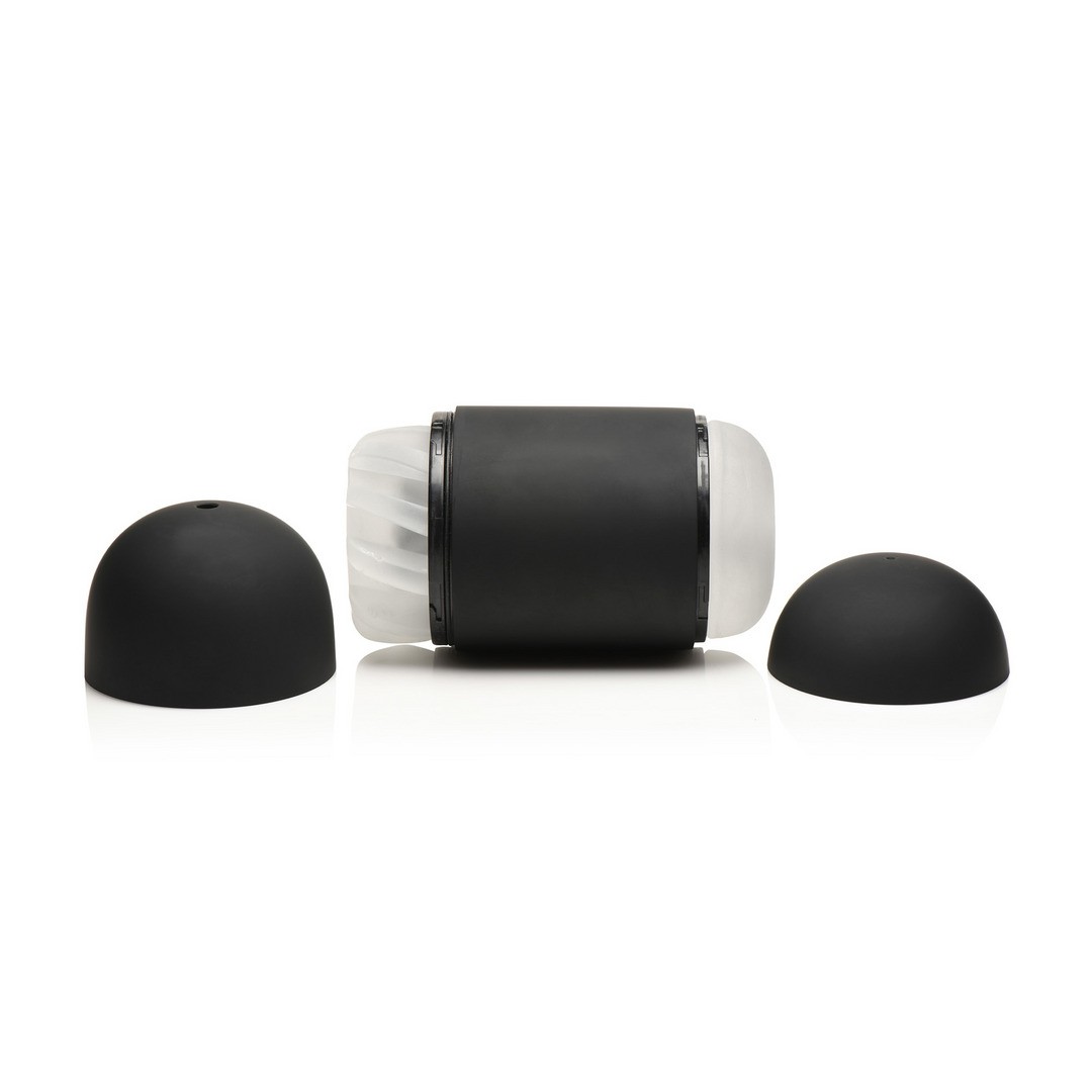 The removable sleeve makes cleaning and maintenance easy. The toy comes with two interchangeable ends: one with spiral grooves and the other with layered ribs, providing different types of stimulation. The rigid case guarantees hygiene and protection between uses.