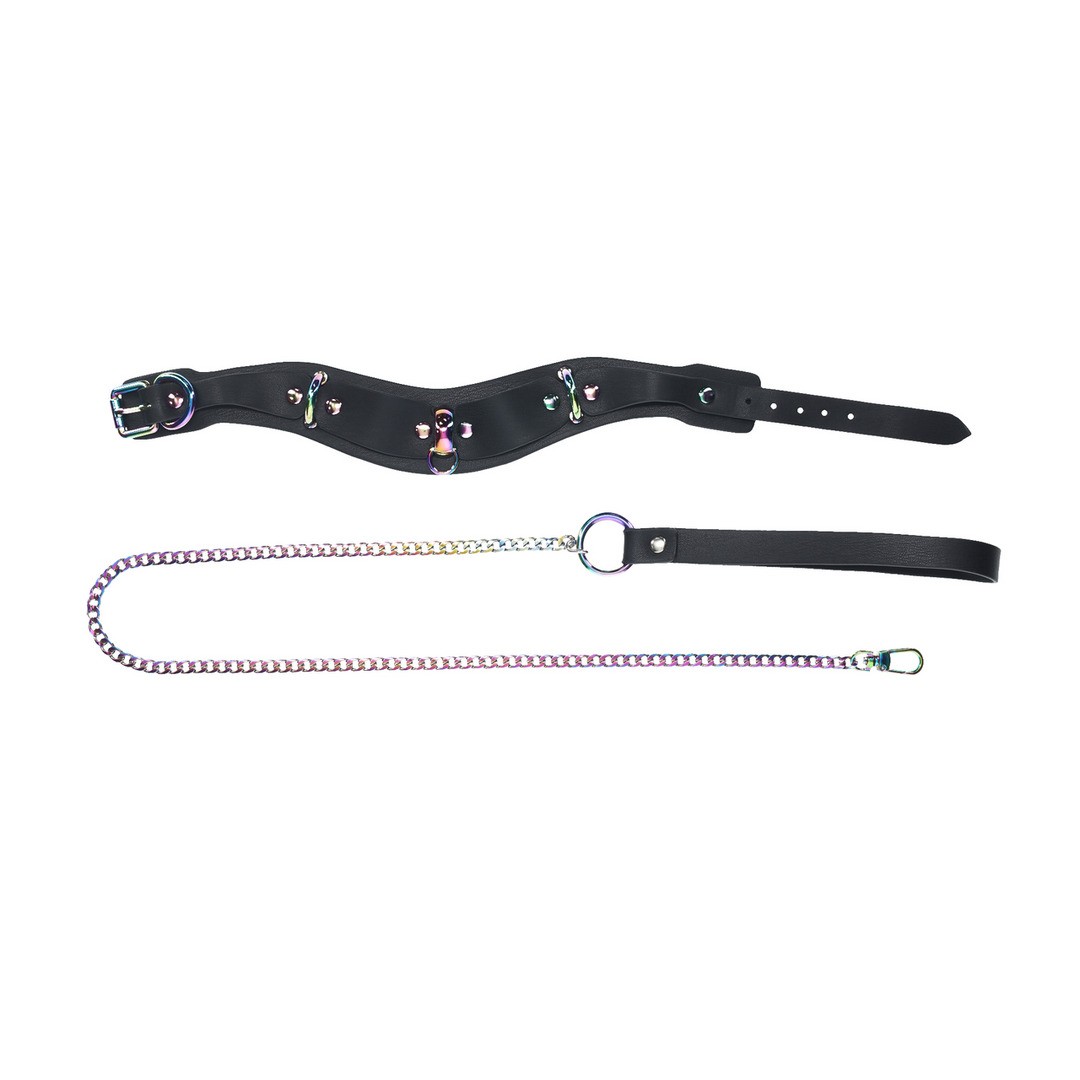 The Venice Collection Collar and Leash by Ouch! is comfortable yet sturdy, and will put you in total control! Made of bonded leather, it features an iridescent finish on its hardware, giving it a high fashion look that is sure to please more than the eye. All Shots toys come with a 1-year warranty.