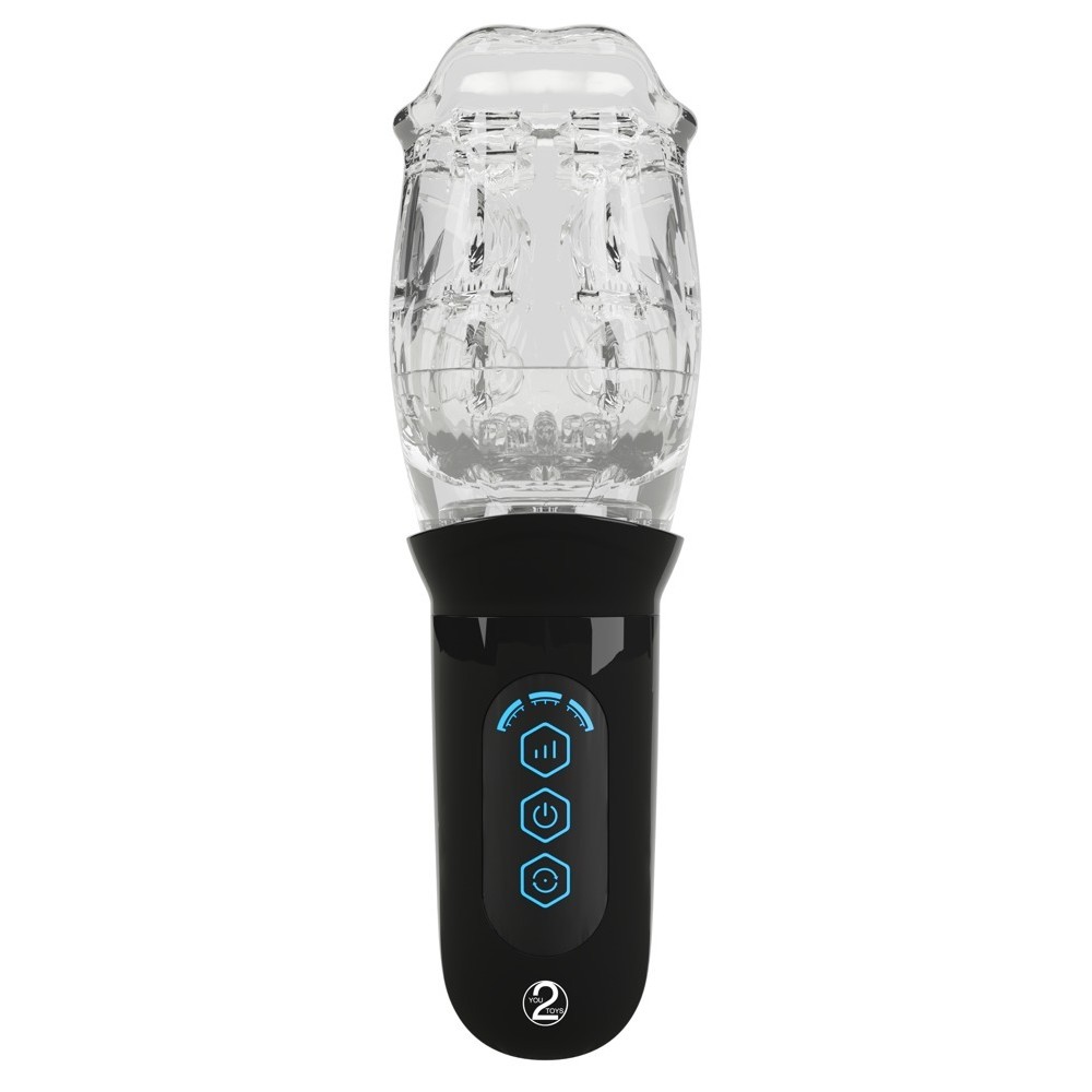 Rotating masturbator with a super soft sleeve, 360° rotation and a realistic mouth-shaped opening for an intense and immersive massage.