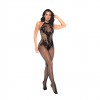 Mesh bodystocking with floral details and low-cut back for an elegant and sensual look.