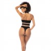 Designed with a halter neckline, crotch closure and thong-style coverage, it provocatively balances elegance and daring.