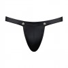 Men's jockstrap with detachable pouch and bold design in matte black spandex for maximum daring and impact.