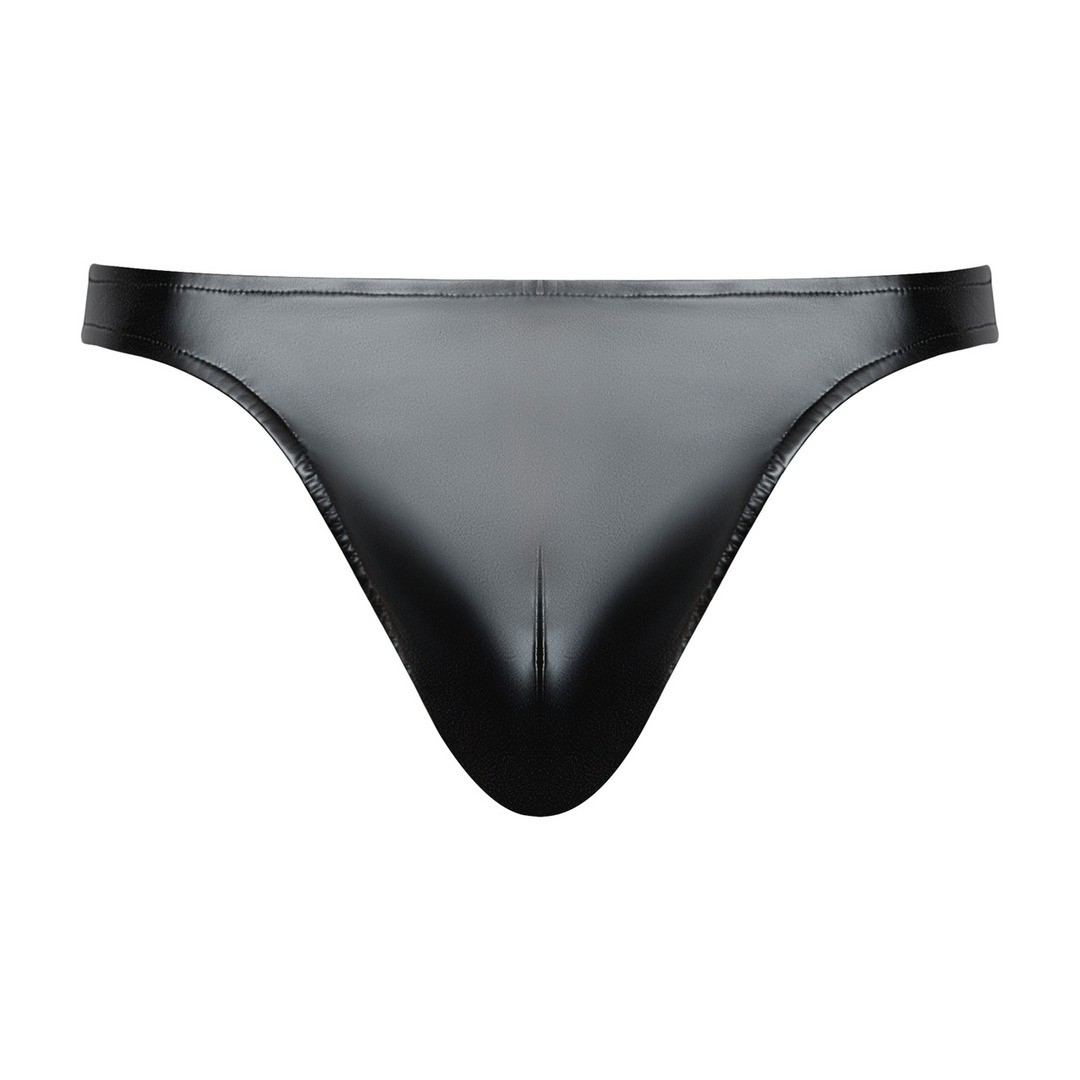 Men's thong with a wet look and bold design that combines shine, comfort and sensuality.